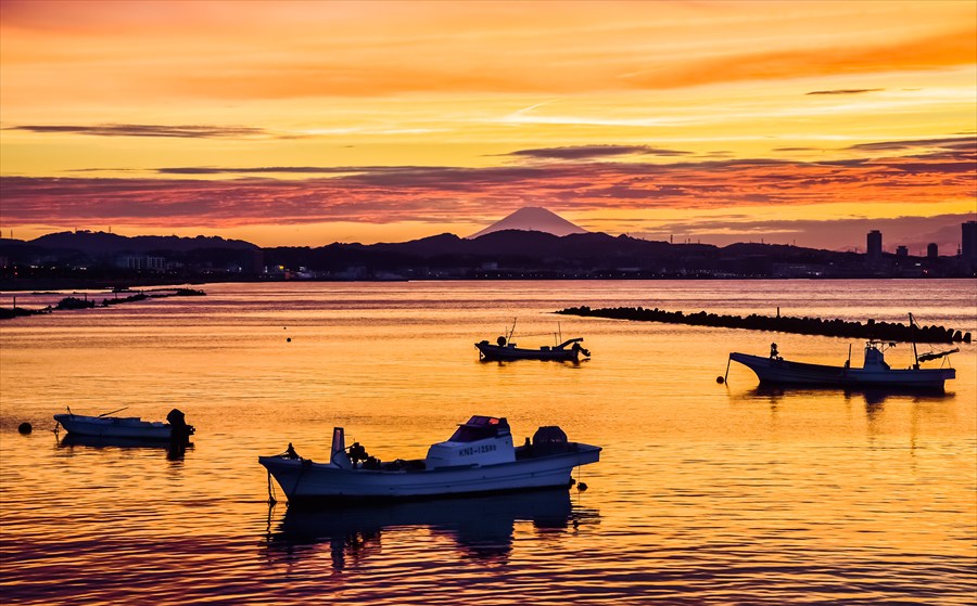 染まる夕凪の港(令和7年度大津・観光写真コンクール)